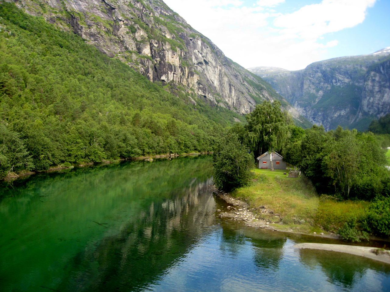 This rock formation includes the famous Trollveggen (immediately out of frame on the right), the tallest vertical rock face in Europe. The lip at the top of the wall actually extends 160 ft. beyond the base, making it both an awe-inspiring sight and a magnet for base jumpers and other thrill seekers. This picture gives a different perspective of the scene—one I am sure I will never see.